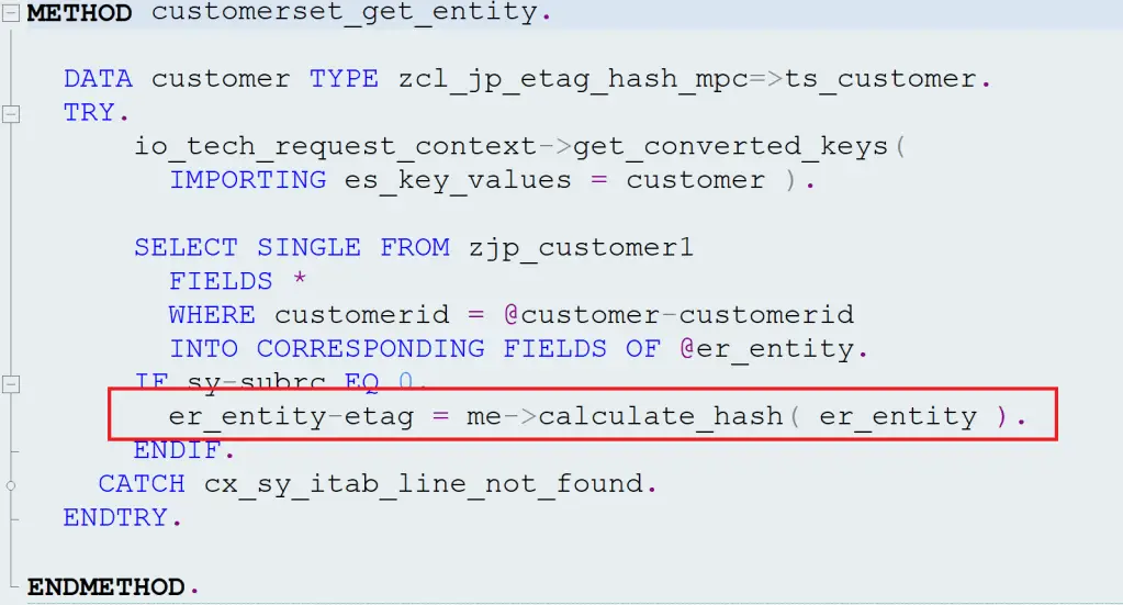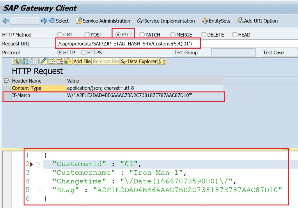 Request URI : /sap/opu/odata/SAP/ZJP_ETAG_HASH_SRV/CustomerSet('01')